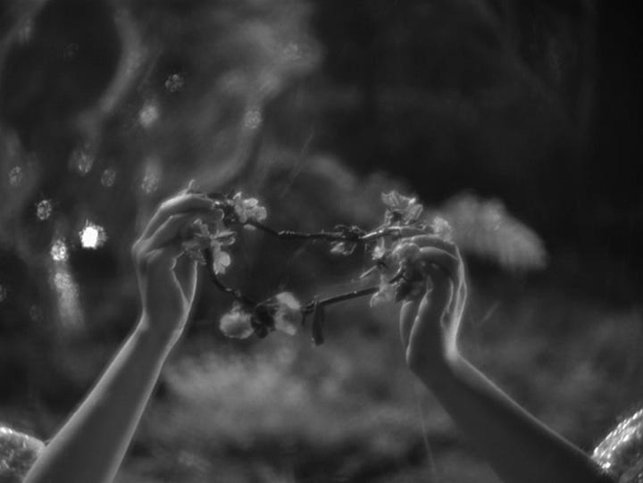 I’m fascinated by the idea of changelings. Babies are replaced with fairies or something not quite human. In the 1935 film version of A Midsummer Night’s Dream, the fairy queen Titania has a human child among her woodland family. Her husband King Oberon wants the child for one of his knights, but she refuses. These scenes of Titania with little fairies are among my all time favorites. The film itself just looks enchanted: glistening gossamer thin cobwebs, Titania’s hair glowing like a halo, her gown shimmering with starlight.